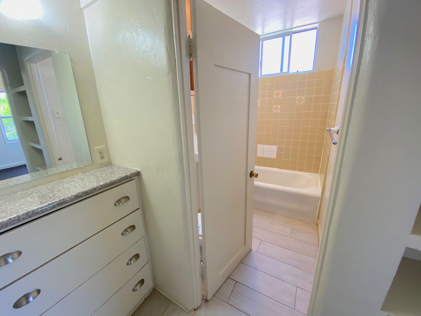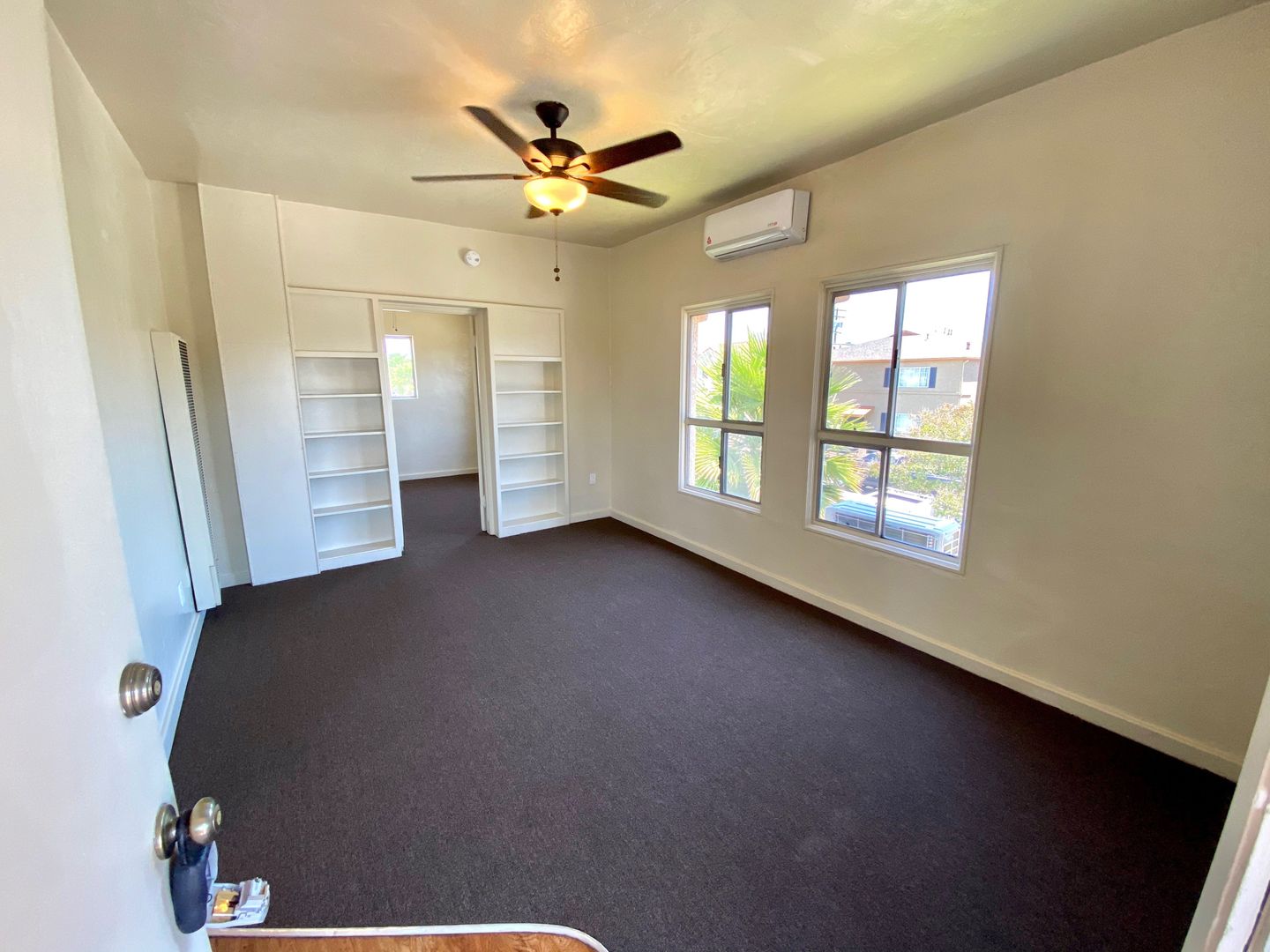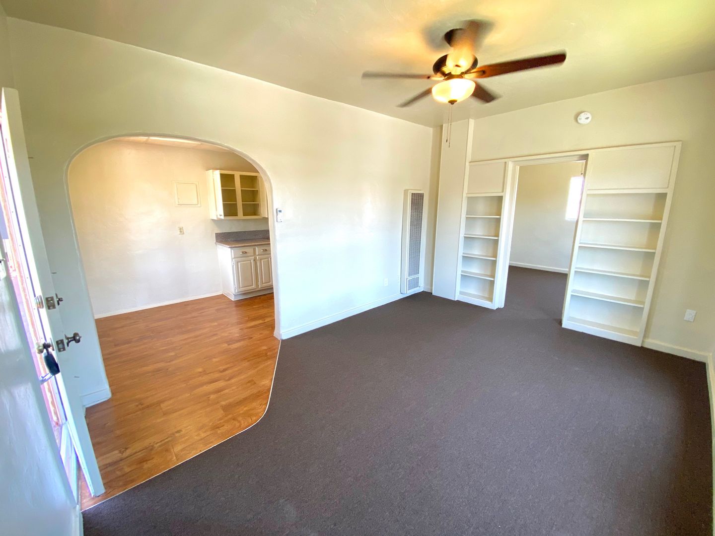 One Bedroom, One Bath Apartment located in a Gated Complex with Laundry Room Onsite and High ceilings and New Carpet. A remodeled kitchen, along with plenty of cabinet space and a small Dining Area! The bedroom also has new carpet, plenty of closets and storage space, and connects to a Charming Vintage Vanity Station. This leads to a bathroom with vintage tile, and the unit has a mini-split AC/heating unit.