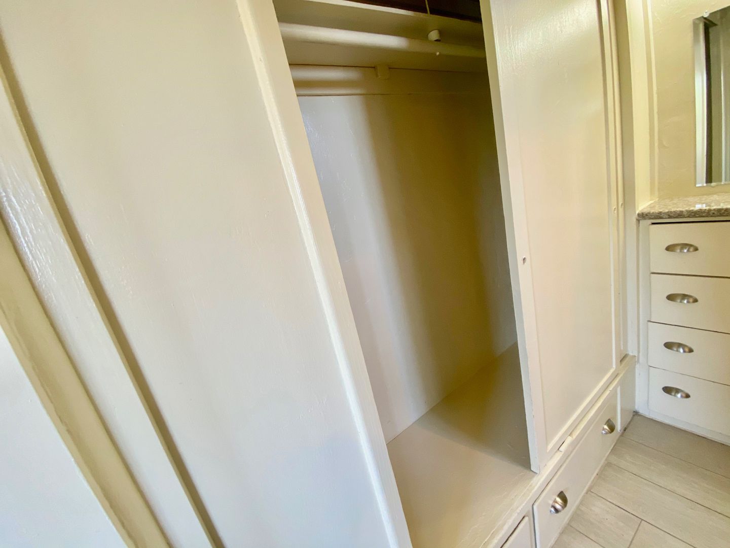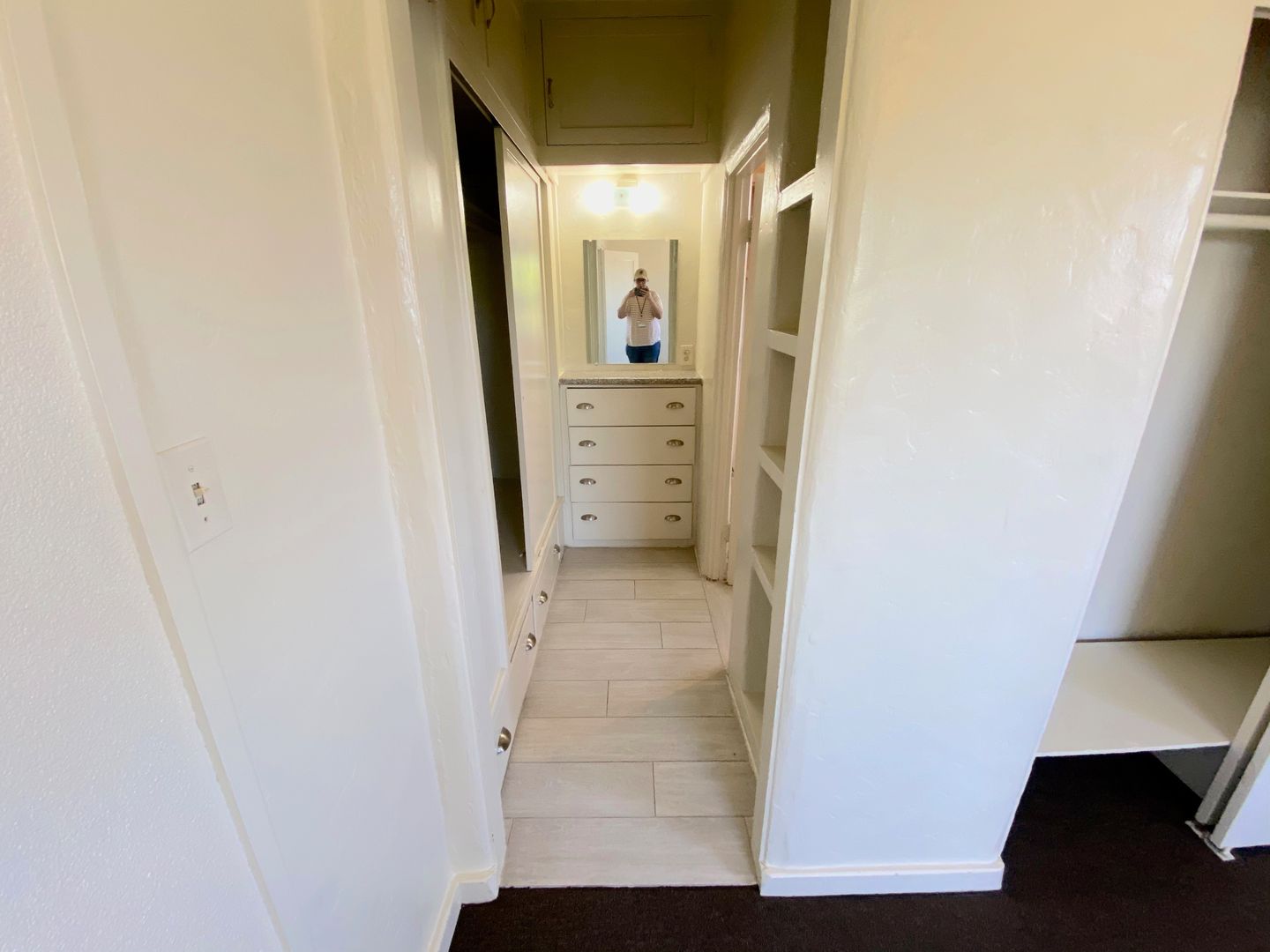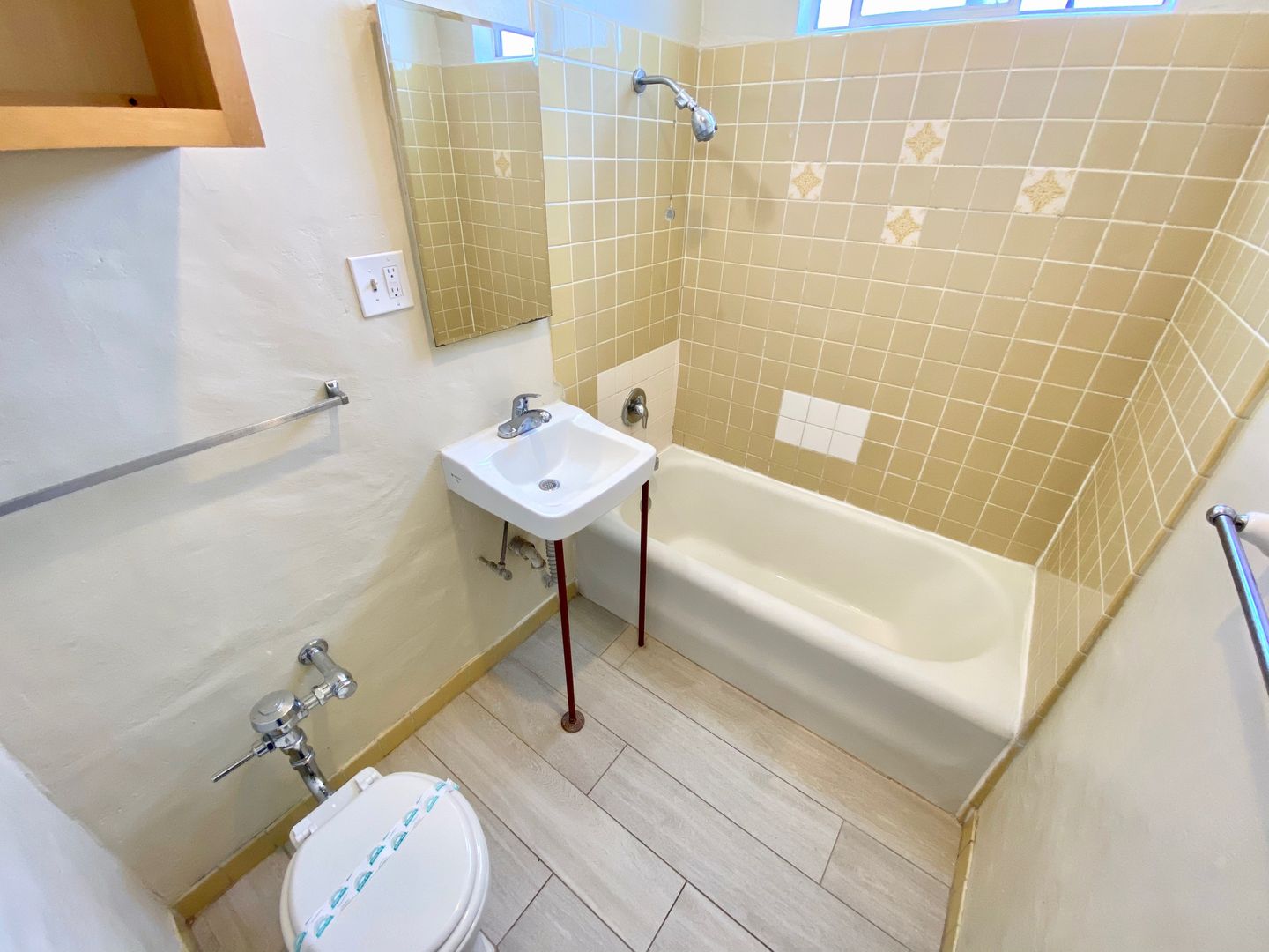 One Bedroom, One Bath Apartment located in a Gated Complex with Laundry Room Onsite and High ceilings and New Carpet. A remodeled kitchen, along with plenty of cabinet space and a small Dining Area! The bedroom also has new carpet, plenty of closets and storage space, and connects to a Charming Vintage Vanity Station. This leads to a bathroom with vintage tile, and the unit has a mini-split AC/heating unit.