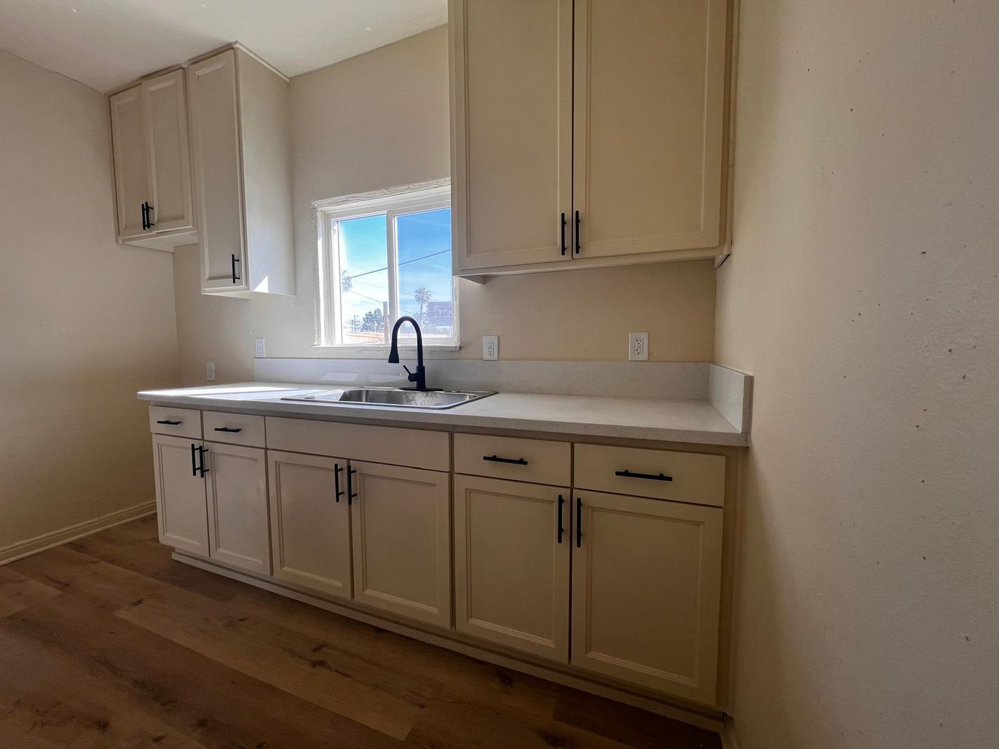 Large One Bedroom, One Bath Apartment located in a Gated Complex with Laundry Room Onsite and High ceilings and New Flooring throughout the unit. A remodeled kitchen with new cabinets, countertops, and a new sink with a faucet. with Dining Area. The bedroom has plenty of closets and storage space, a Vintage hall storage area, and a new ceiling fan in the living room. The bathroom has a new tub with ceiling-to-floor tile, a sink, a new faucet, and a new toilet. NEW AC unit.
